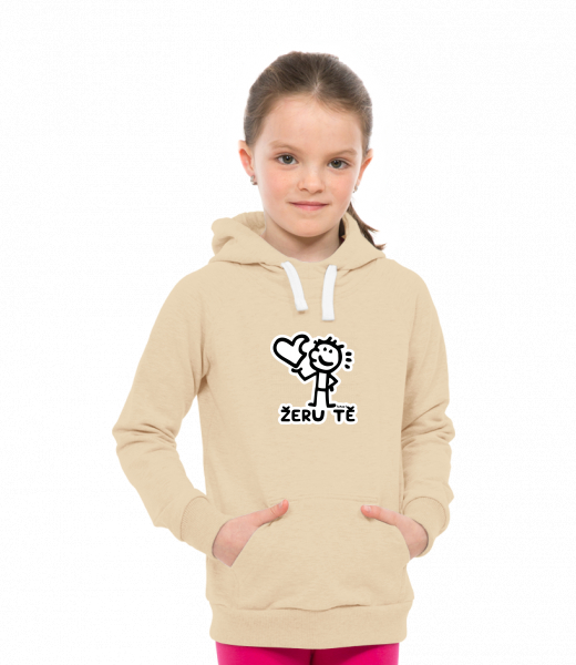 Dětská mikina LIGHT přes hlavu s kapucí a potiskem Lyžařská kolekce pro děti s potiskem 1244 ŽERU TĚ v barvě CARAMEL