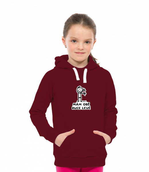 Dětská mikina LIGHT přes hlavu s kapucí a potiskem Lyžařská kolekce pro děti s potiskem 1248 MÁM OBĚ RUCE LEVÉ v barvě DARK RED