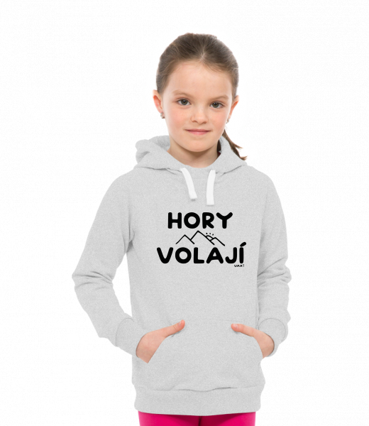 Dětská mikina LIGHT přes hlavu s kapucí a potiskem Lyžařská kolekce pro děti s potiskem 1262 HORY VOLAJÍ v barvě MELANZ