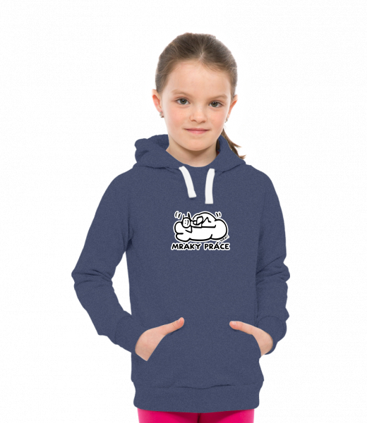 Dětská mikina LIGHT přes hlavu s kapucí a potiskem Lyžařská kolekce pro děti s potiskem 1269 MRAKY PRÁCE v barvě JEANS