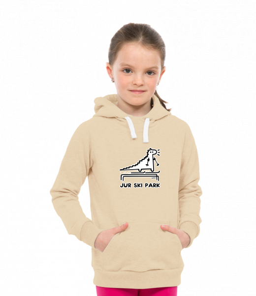 Dětská mikina LIGHT přes hlavu s kapucí a potiskem Lyžařská kolekce pro děti s potiskem 1277 JUR SKI PARK v barvě CARAMEL