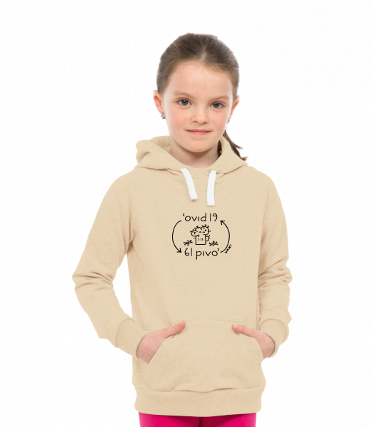 Dětská mikina LIGHT přes hlavu s kapucí a potiskem Lyžařská kolekce pro děti s potiskem 1297 COVID 6L PIVO v barvě CARAMEL