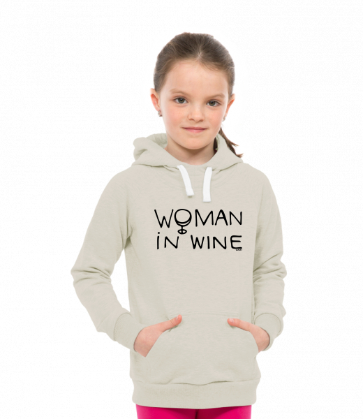 Dětská mikina LIGHT přes hlavu s kapucí a potiskem Lyžařská kolekce pro děti s potiskem 1346 WOMAN IN WINE 1 v barvě IVORY