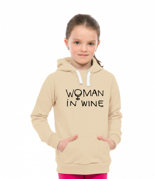 Dětská mikina LIGHT přes hlavu s kapucí a potiskem Lyžařská kolekce pro děti s potiskem 1346 WOMAN IN WINE 1 v barvě CARAMEL