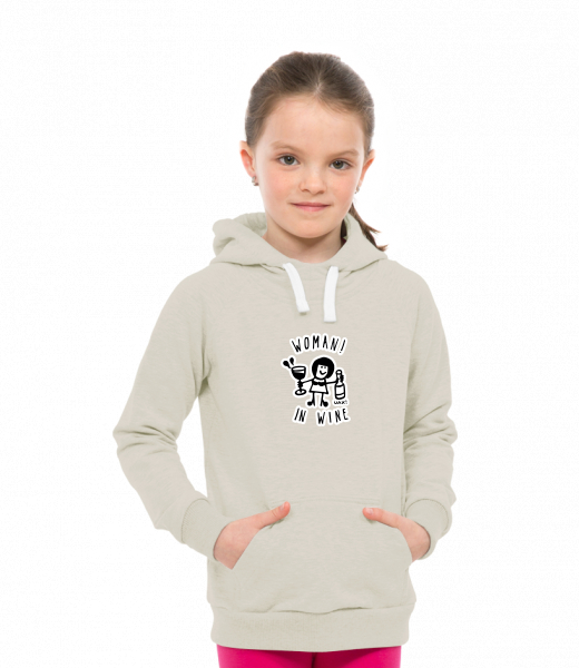 Dětská mikina LIGHT přes hlavu s kapucí a potiskem Lyžařská kolekce pro děti s potiskem 1347 WOMAN IN WINE 2 v barvě IVORY