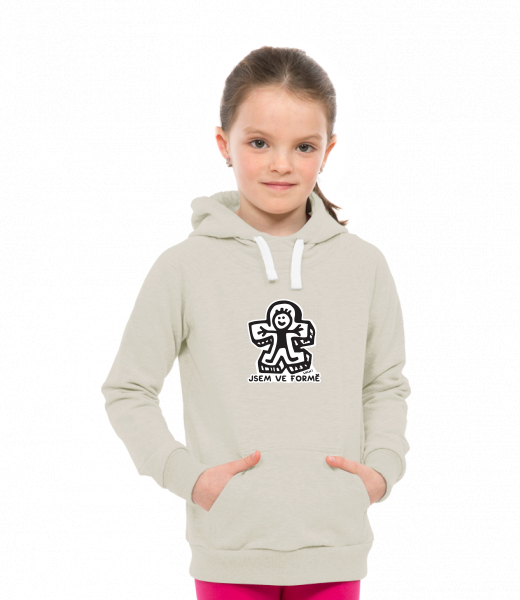 Dětská mikina LIGHT přes hlavu s kapucí a potiskem Lyžařská kolekce pro děti s potiskem 1351 JSEM VE FORMĚ v barvě IVORY