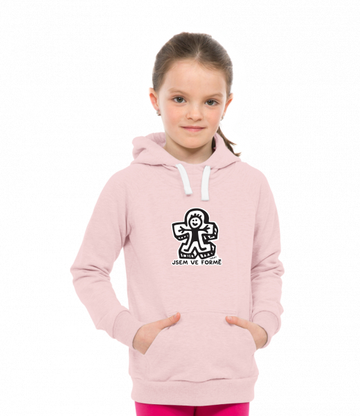 Dětská mikina LIGHT přes hlavu s kapucí a potiskem Lyžařská kolekce pro děti s potiskem 1351 JSEM VE FORMĚ v barvě OLD PINK