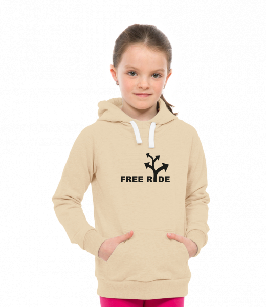 Dětská mikina LIGHT přes hlavu s kapucí a potiskem Lyžařská kolekce pro děti s potiskem 344 FREE RIDE v barvě CARAMEL