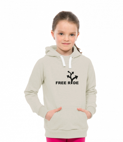 Dětská mikina LIGHT přes hlavu s kapucí a potiskem Lyžařská kolekce pro děti s potiskem 344 FREE RIDE v barvě IVORY
