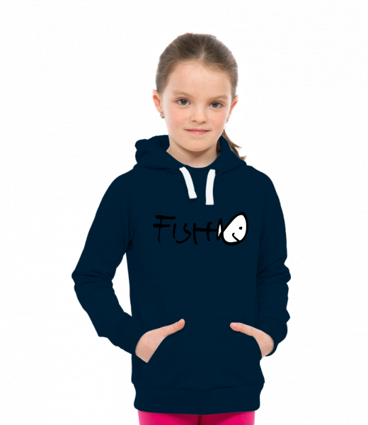 Dětská mikina LIGHT přes hlavu s kapucí a potiskem Lyžařská kolekce pro děti s potiskem 357 FISH v barvě DARK NAVY