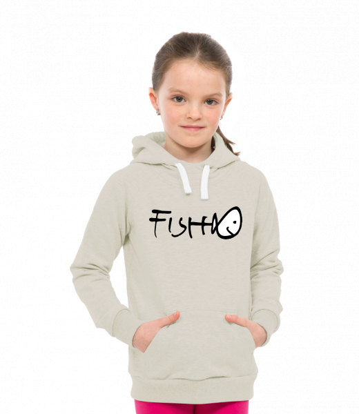 Dětská mikina LIGHT přes hlavu s kapucí a potiskem Lyžařská kolekce pro děti s potiskem 357 FISH v barvě IVORY