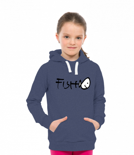 Dětská mikina LIGHT přes hlavu s kapucí a potiskem Lyžařská kolekce pro děti s potiskem 357 FISH v barvě JEANS