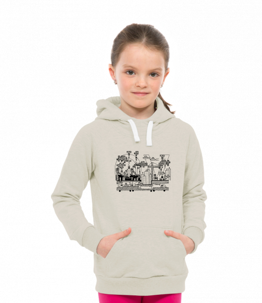 Dětská mikina LIGHT přes hlavu s kapucí a potiskem Lyžařská kolekce pro děti s potiskem 40 OSTRAVA v barvě IVORY