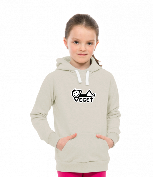Dětská mikina LIGHT přes hlavu s kapucí a potiskem Lyžařská kolekce pro děti s potiskem 468 VEGET v barvě IVORY