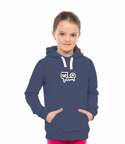 Dětská mikina LIGHT přes hlavu s kapucí a potiskem Lyžařská kolekce pro děti s potiskem 476 TIGER v barvě JEANS