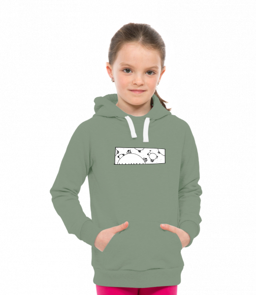 Dětská mikina LIGHT přes hlavu s kapucí a potiskem Lyžařská kolekce pro děti s potiskem 55 CYCLOCOSMOS v barvě OLIVA