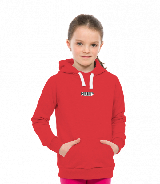 Dětská mikina LIGHT přes hlavu s kapucí a potiskem Lyžařská kolekce pro děti s potiskem 71 FISHBARCODE v barvě RED