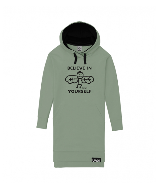 Vyrábíme udržitelné oblečení UAX! - ručně šité v Česku uaxDěti uaxLyžařská kolekceMikinyDĚTSKÉ MIKINOVÉ ŠATY LONGpotisk 1228 - BELIEVE IN YOURSELFOLIVA