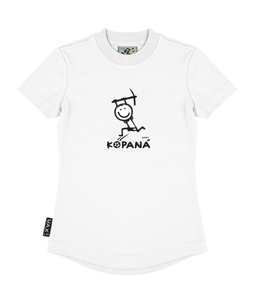 Vyrábíme udržitelné oblečení UAX! - ručně šité v Česku uaxDěti uaxLyžařská kolekceTričkaDÍVČÍ TRIČKOpotisk 1135 - KOPANÁWHITE