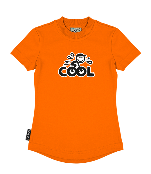 Vyrábíme udržitelné oblečení UAX! - ručně šité v Česku uaxDěti uaxLyžařská kolekceTričkaDÍVČÍ TRIČKOpotisk 1169 - COOL CYCLISTSIGNAL ORANGE