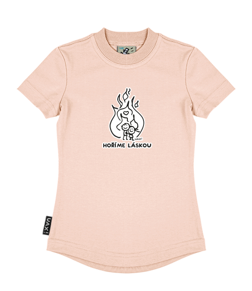 Vyrábíme udržitelné oblečení UAX! - ručně šité v Česku uaxDěti uaxLyžařská kolekceTričkaDÍVČÍ TRIČKOpotisk 1208 - HOŘÍME LÁSKOUCAPPUCINO