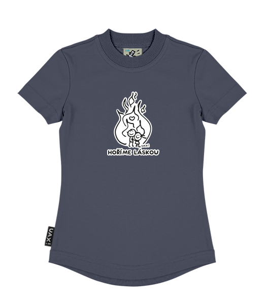 Vyrábíme udržitelné oblečení UAX! - ručně šité v Česku uaxDěti uaxLyžařská kolekceTričkaDÍVČÍ TRIČKOpotisk 1208 - HOŘÍME LÁSKOUGRAY INK