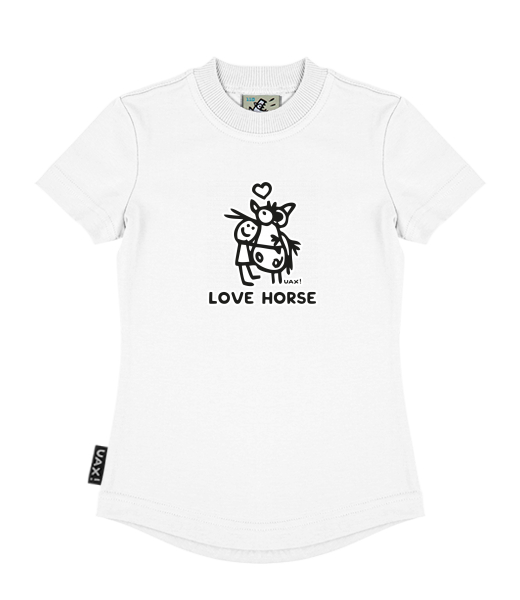 Vyrábíme udržitelné oblečení UAX! - ručně šité v Česku uaxDěti uaxLyžařská kolekceTričkaDÍVČÍ TRIČKOpotisk 1219 - LOVE HORSE