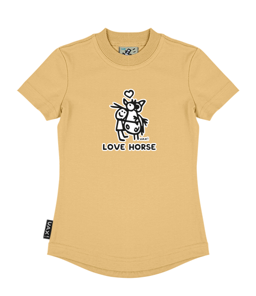 Vyrábíme udržitelné oblečení UAX! - ručně šité v Česku uaxDěti uaxLyžařská kolekceTričkaDÍVČÍ TRIČKOpotisk 1219 - LOVE HORSEMUSTARD