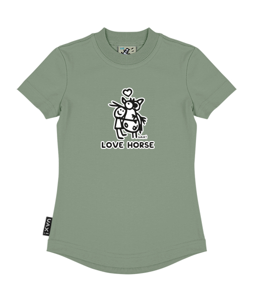 Vyrábíme udržitelné oblečení UAX! - ručně šité v Česku uaxDěti uaxLyžařská kolekceTričkaDÍVČÍ TRIČKOpotisk 1219 - LOVE HORSEOLIVA