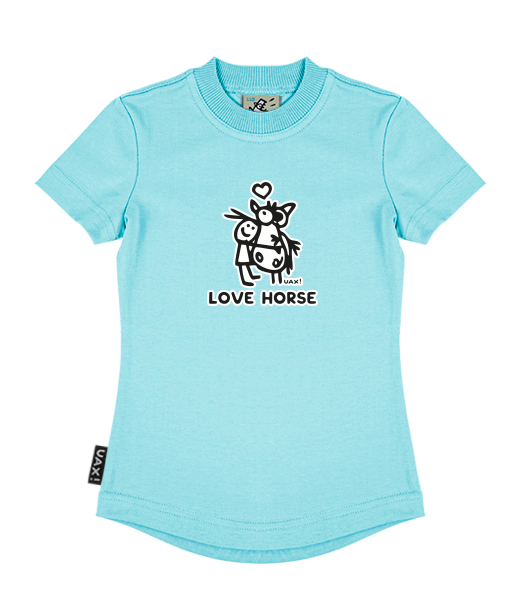 Vyrábíme udržitelné oblečení UAX! - ručně šité v Česku uaxDěti uaxLyžařská kolekceTričkaDÍVČÍ TRIČKOpotisk 1219 - LOVE HORSEPASTEL BLUE