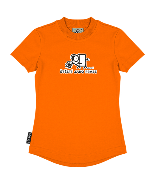 Vyrábíme udržitelné oblečení UAX! - ručně šité v Česku uaxDěti uaxLyžařská kolekceTričkaDÍVČÍ TRIČKOpotisk 1220 - ŠTĚSTÍ JAKO PRASESIGNAL ORANGE