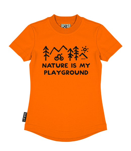 Vyrábíme udržitelné oblečení UAX! - ručně šité v Česku uaxDěti uaxLyžařská kolekceTričkaDÍVČÍ TRIČKOpotisk 1223 - NATURE IS MY PLAYGROUNDSIGNAL ORANGE