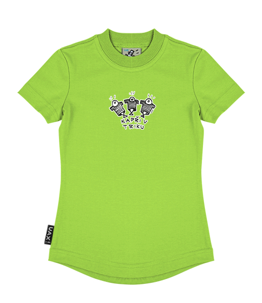 Vyrábíme udržitelné oblečení UAX! - ručně šité v Česku uaxDěti uaxLyžařská kolekceTričkaDÍVČÍ TRIČKOpotisk 530 - KAPRI V TRIKUPARROT GREEN