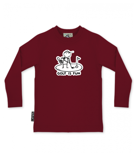 Chlapecké dětské trička SKRATCHILD+ UAX Lyžařská kolekce pro děti s potiskem 1057 GOLF IS FUN v barvě DARK RED