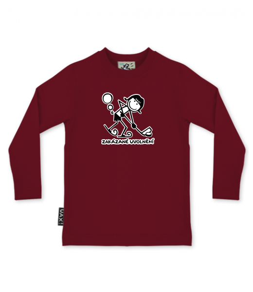 Vyrábíme udržitelné oblečení UAX! - ručně šité v Česku uaxDěti uaxLyžařská kolekceTričkaTRIČKA SKRATCHILD PLUSpotisk 1059 - ZAKÁZANÉ UVOLNĚNÍDARK RED