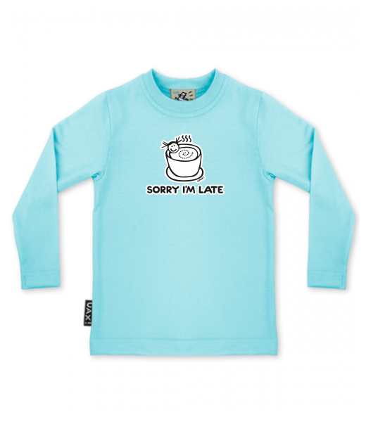 Vyrábíme udržitelné oblečení UAX! - ručně šité v Česku uaxDěti uaxLyžařská kolekceTričkaTRIČKA SKRATCHILD PLUSpotisk 1087 - SORRY IM LATEPASTEL BLUE