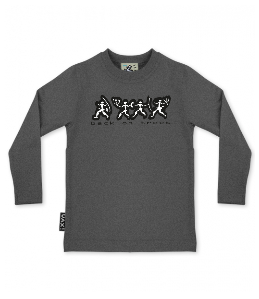 Chlapecké dětské trička SKRATCHILD+ UAX Lyžařská kolekce pro děti s potiskem 11 BACK ON TREES v barvě GRAFIT
