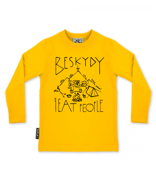Vyrábíme udržitelné oblečení UAX! - ručně šité v Česku uaxDěti uaxLyžařská kolekceTričkaTRIČKA SKRATCHILD PLUSpotisk 1241 - I EAT PEOPLE BESKYDYGOLDEN CREAM