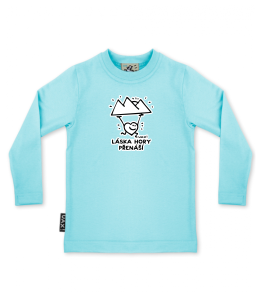 Vyrábíme udržitelné oblečení UAX! - ručně šité v Česku uaxDěti uaxLyžařská kolekceTričkaTRIČKA SKRATCHILD PLUSpotisk 1264 - LÁSKA HORY PŘENÁŠÍPASTEL BLUE