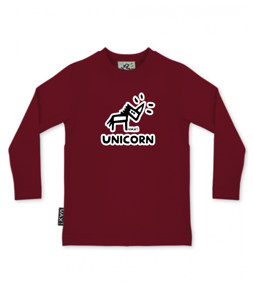 Vyrábíme udržitelné oblečení UAX! - ručně šité v Česku uaxDěti uaxLyžařská kolekceTričkaTRIČKA SKRATCHILD PLUSpotisk 1376 - UNICORNDARK RED