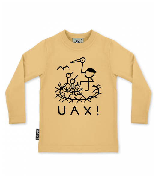 Vyrábíme udržitelné oblečení UAX! - ručně šité v Česku uaxDěti uaxLyžařská kolekceTričkaTRIČKA SKRATCHILD PLUSpotisk 1381 - ČÁPÍ HNÍZDOMUSTARD