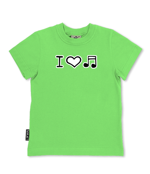 Dětské trička - SKRATCHILD Lyžařská kolekce pro děti s potiskem 1067 I LOVE MUSIC v barvě APPLE