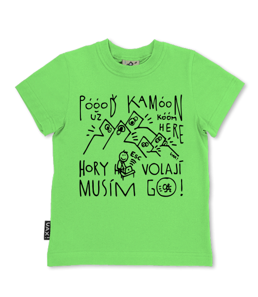 Dětské trička - SKRATCHILD Lyžařská kolekce pro děti s potiskem 1368 POOOĎ KAMOON HORY MUSÍM JÍT GO v barvě APPLE