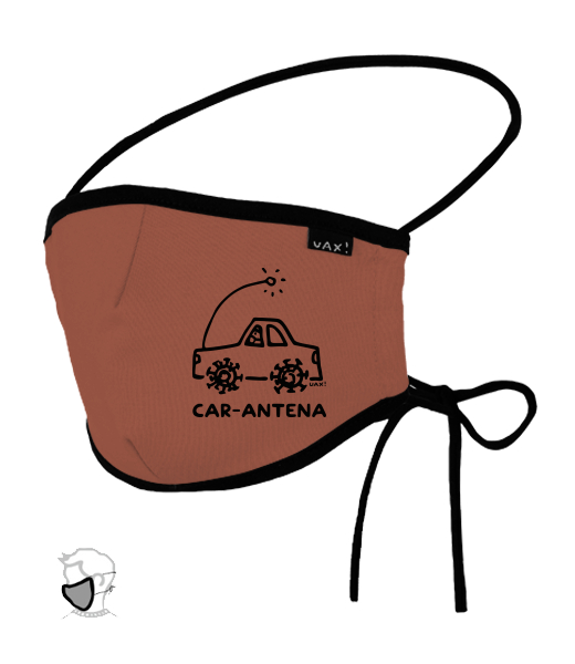 Bavlněná rouška karantena s potiskem UAX pro děti s potiskem 1284 CAR-ANTENA v barvě TERRA