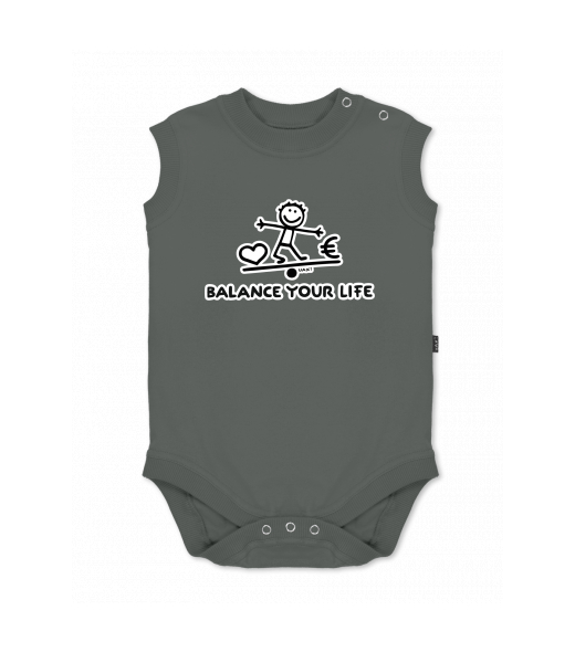 Dětské body bez rukávů pro děti s potiskem 1039 BALANCE YOUR LIFE v barvě DARK GRAY