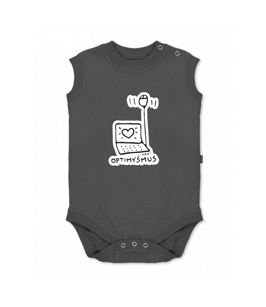Dětské body bez rukávů pro děti s potiskem 1040 OPTIMYŠMUS v barvě GRAFIT