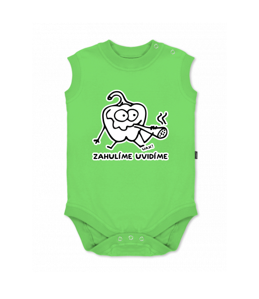 Dětské body bez rukávů pro děti s potiskem 1246 ZHULÍME UVIDÍME v barvě APPLE