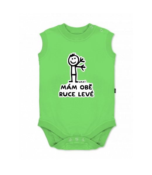 Dětské body bez rukávů pro děti s potiskem 1248 MÁM OBĚ RUCE LEVÉ v barvě APPLE