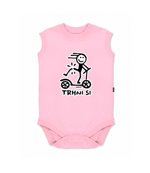 Dětské body bez rukávů pro děti s potiskem 1357 TRHNI SI NOHOU v barvě BABY PINK
