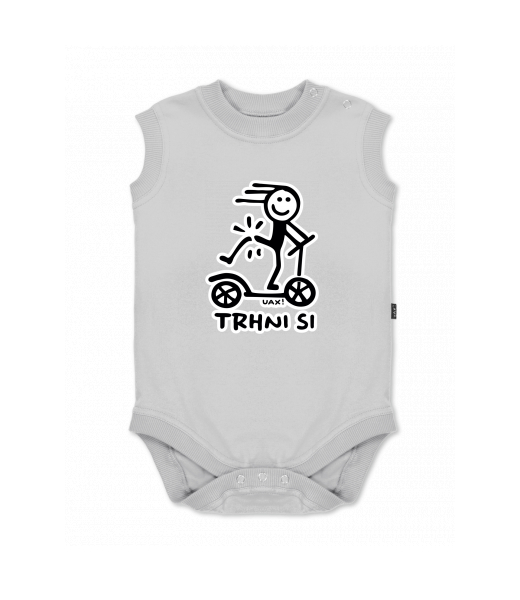 Dětské body bez rukávů pro děti s potiskem 1357 TRHNI SI NOHOU v barvě CEMENT